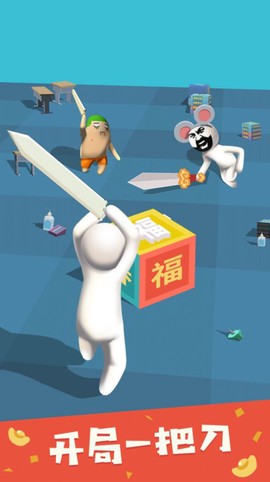 我反手就是一刀是一款融合了沙雕魔性风格与快节奏闯关玩法的动作游戏。玩家将操控角色手持一把可成长的武器,在充满搞笑元素和网络热梗的3D卡通世界中展开冒险。游戏以其无拘无束的自由出招体验和轻松解压的挑战过程为主要特色。