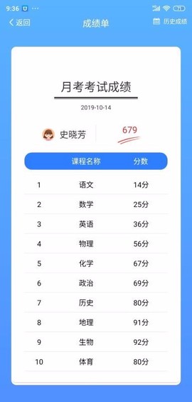 6、查看历史成绩只需一点,即可轻松了解孩子往期的学习表现,从而做出有效的学习规划。