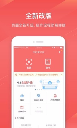3、账单的功能进行了大升级,每日的交易清晰可见,收入也能按照收款方式排列,方便查账;