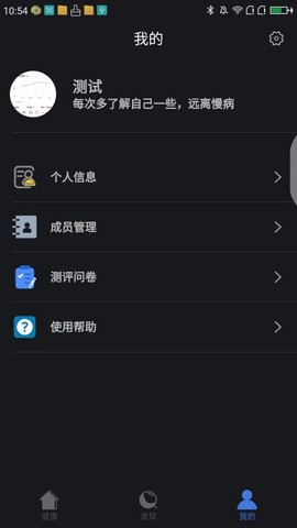 5、个人中心功能布局合理,集成个人信息维护、成员管理、测评问卷等多个实用模块,操作路径明确。